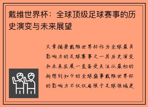 文章摘要:本文围绕“萌动世界杯梦想 激发足球热情与欢笑的奇妙旅程”这一主题,探讨了世界杯对全球青少年足球梦想的影响以及足球如何促进社会和谐、提升体育文化。通过四个方面的论述,本文深入分析了足球带给人们的梦想与激情,特别是在世界杯期间,它如何激发年轻人参与足球运动的兴趣,以及如何在全球范围内推广这一运动。同时,文章通过引用世界著名大学的研究成果,展示了足球对人类心理和社会行为的积极影响。最后,文章总...